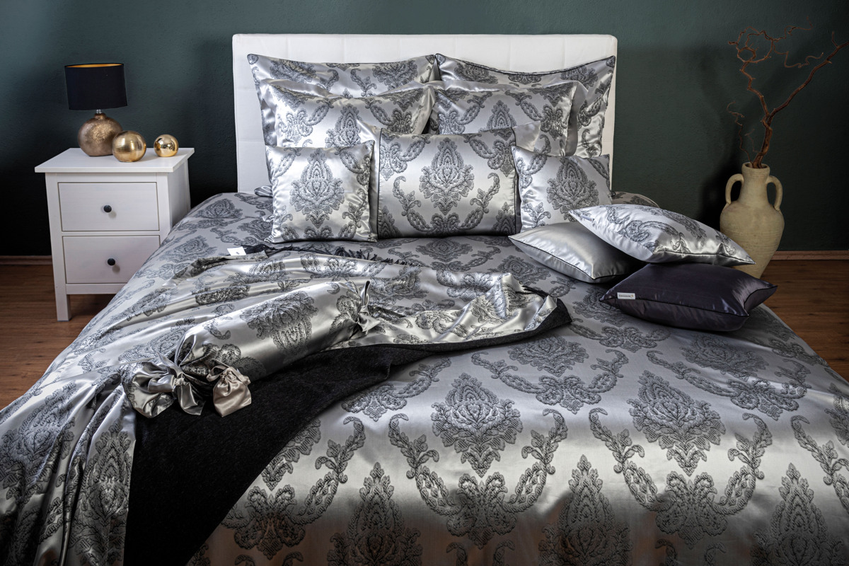 Silk has been woven in Plauen, Saxony, since the days of the German Empire. The Plauen silk mill is one of the last fully integrated manufactories in Europe—and the last to truly master weaving silk in Jacquard patterns. Floral ornaments, paisley designs, baroque textures: what is created here is woven, not printed. The difference lies in the depth. Woven patterns live with the light; they change, they have substance. Nearly a century of experience goes into every piece—knowledge passed from hand to hand and preserved within the weave itself. When you touch Seidenweber bedding, you touch that history.