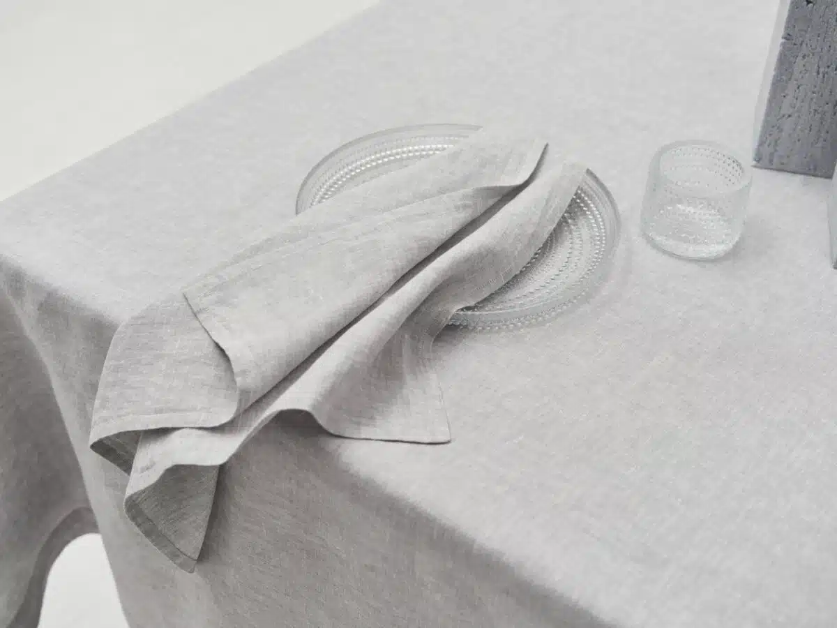 With their unique look, linen tablecloths complement any tableware and table decorations, whether the table is set for 2 or 20 people. Linen tablecloths are the first choice for a festive table. The heavy fabric lies smoothly on the table surface and has an extremely elegant drape on the sides. Linen tablecloths and table runners combine wonderfully in muted colors or, of course, in classic white. Linen tablecloths are quite resistant to stains. The smooth and dense fiber repels dirt and is easy to clean. The purely mechanically treated fabric for tablecloths and table runners made from European organic linen is very pleasant to the touch and also impresses with its unconditional sustainability, which is certified by the Oeko Tex Standard 100. Organic linen napkins round off the perfect set for a festive or everyday table setting.