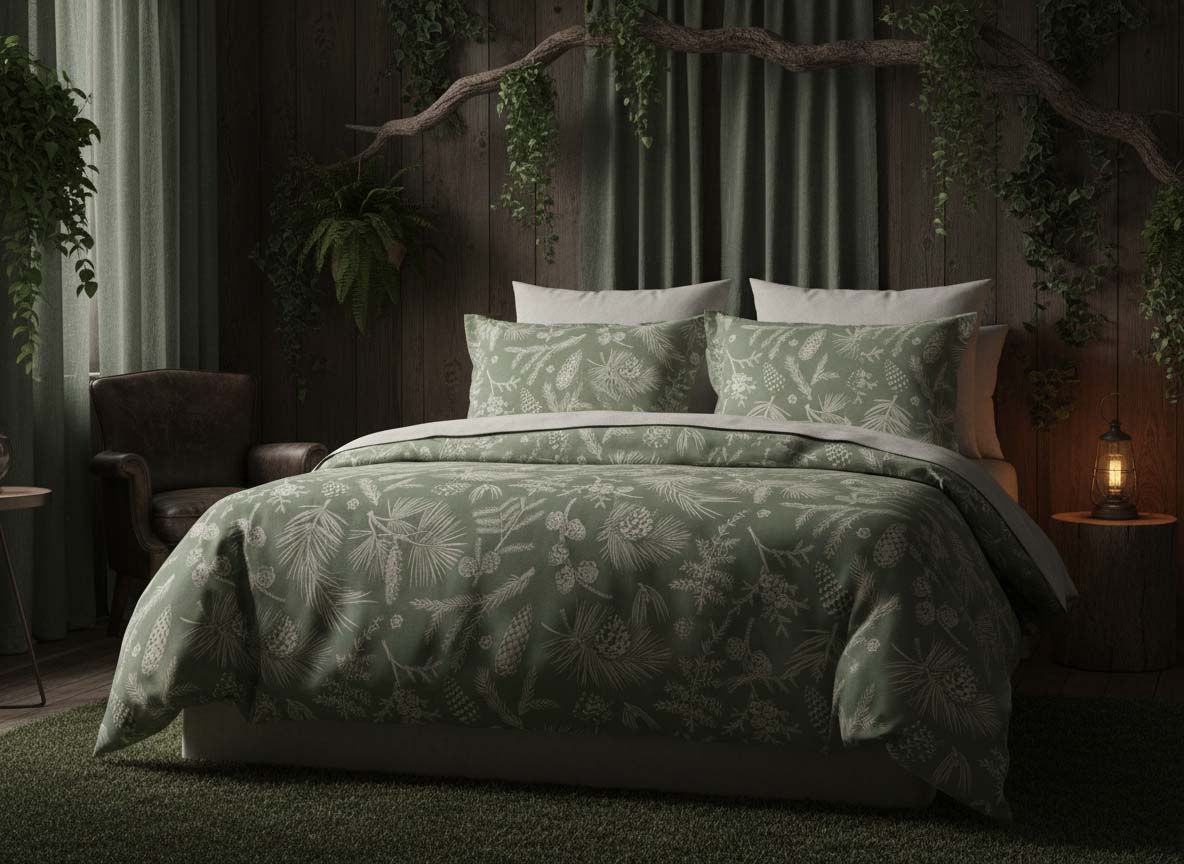 ✓ Design: Forest-inspired pattern with vertical structures and natural depth