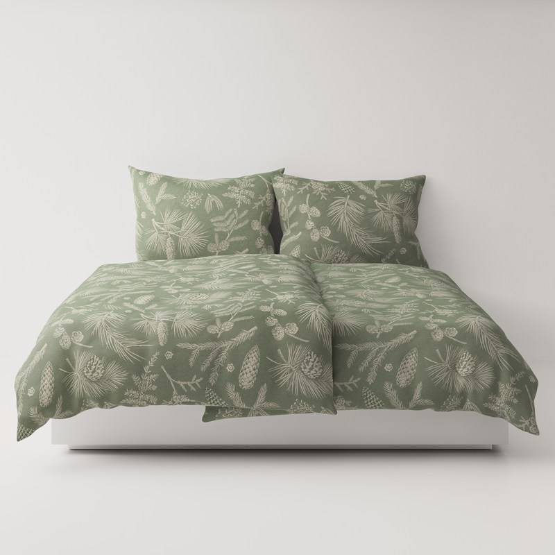 Foresta – the forest as the ancient Romans saw it: not as a wilderness, but as a living space, permeated by light and shadow, structured by the silent growth over decades. In the forests of Central Europe, where beech trees form their silver-grey trunks into cathedrals, a pattern of vertical lines and horizontal interlacing emerges. This design captures this organic architecture: trunk structures strive upwards, branch forks branch out rhythmically, the play of light between the canopy and the forest floor creates an effect of depth. What the forest forms over centuries is shown here in the characteristic structure of the linen – the natural up and down of the fibers reinforces the illusion of grown layers. The pattern combines botanical precision with textile abstraction. Foresta transforms your bedroom into a tranquil forest space, where tranquillity does not mean emptiness, but the complex stillness of grown nature.