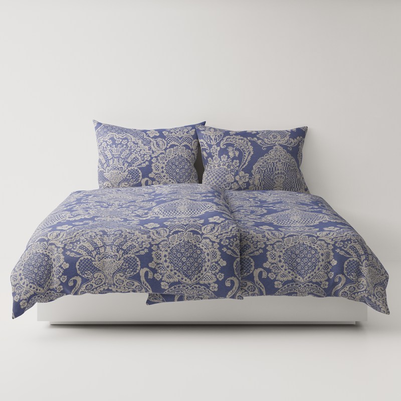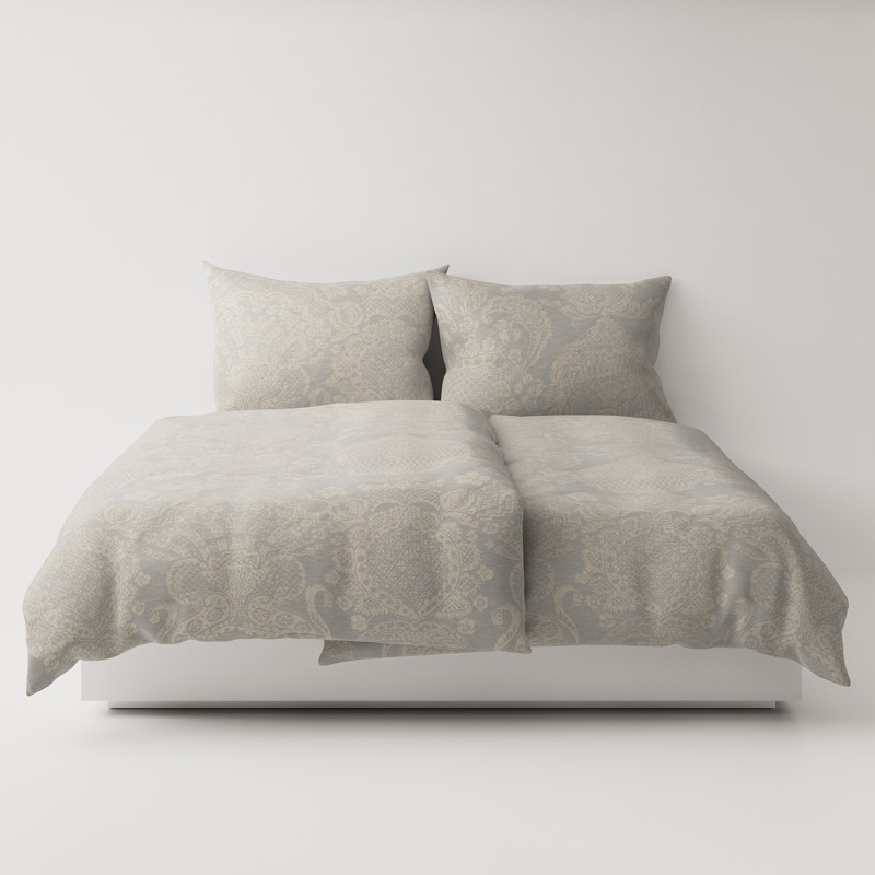 Imperial – the name says it all: stately, majestic, timeless grandeur. This bed linen pays homage to the splendor of the Baroque era, a period in which opulence and artistry merged into an incomparable unity. Lush floral motifs unfold in lavish abundance across the fabric, artfully composed according to the principles of Baroque ornamentation. Sweeping acanthus leaves, stylized blossoms and elegant tendrils come together to create an overall work that combines opulence with noblesse. Imperial achieves the seemingly impossible: It is expansive and yet discreet, magnificent and never obtrusive. The nine noble shades – from pure white to delicate sakura and deep delft blue to earthy nuances such as terra and granite – transform the bedroom into a royal chamber.