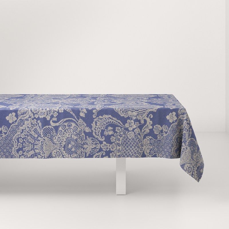 Imperial is available as a tablecloth and napkin. The fabric consists of 100 percent European pure linen in an elaborate jacquard linen weave. The color palette comprises nine shades and ranges from classic white to the pastel softness of Sakura and the cool nuances of Lago, Delft Blue and Arctic Blue. The earthy tones of Linen, Terra and Stone convey warm restraint, while Granite, the darkest tone in the range, adds a depth that supports prestigious settings. Each color scheme can be combined with porcelain as well as with stoneware or contemporary tableware. Imperial is a tablecloth for occasions where the table needs to be more than just a surface.