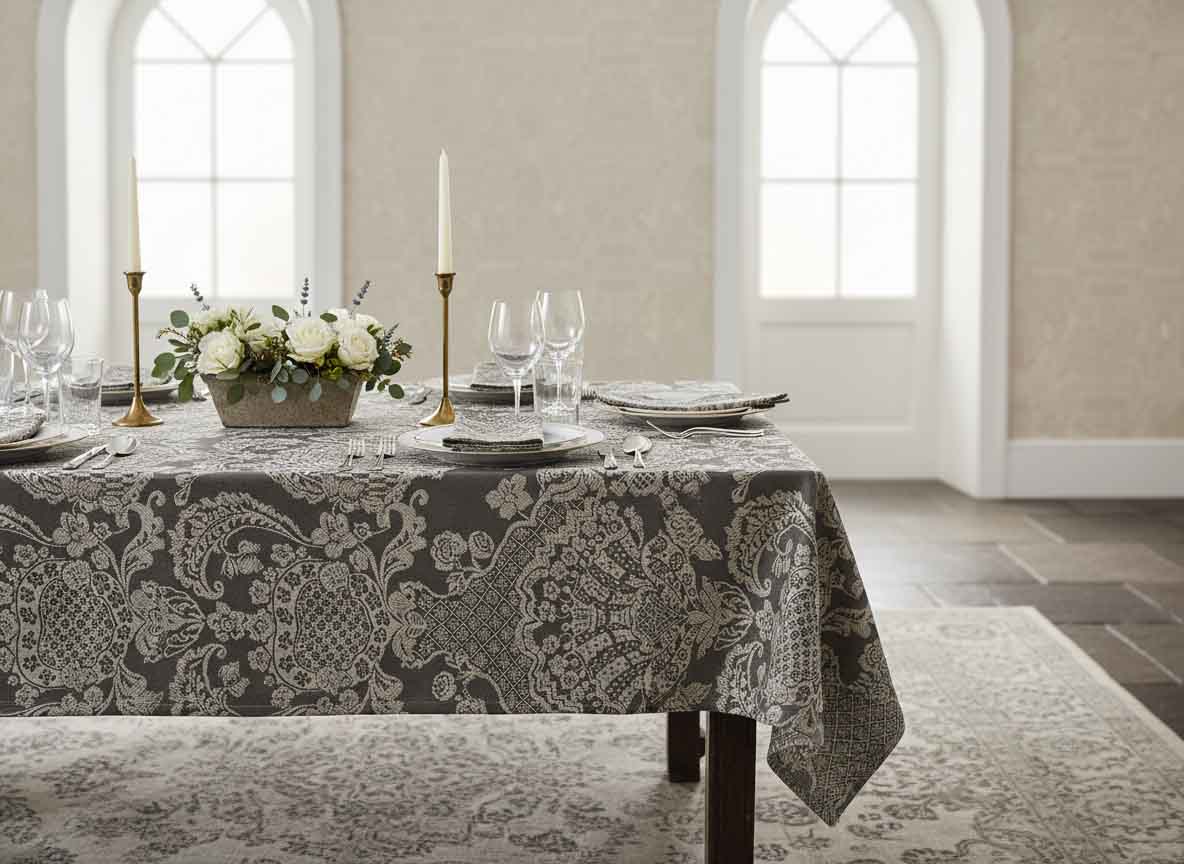 Imperial – stately, imperial, representative. With this design, Leitner Leinen takes us into the world of the European High Baroque, the era between the 17th and 18th centuries in which courtly power manifested itself in ornamental splendor. In the Habsburg Empire under Maria Theresa, in the residences of Schönbrunn and the Hofburg, a dining culture developed that inseparably combined ceremonial and aesthetics. Acanthus leaves, stylized calyxes and voluminous tendrils – the design language that shaped architecture and textiles alike – are found in full opulence in the Imperial pure linen. The pattern takes up space without being overwhelming. It asserts itself on the table without being obtrusive. The Imperial tablecloth quotes a cultural tradition in which the table became the setting for courtly ceremonial.