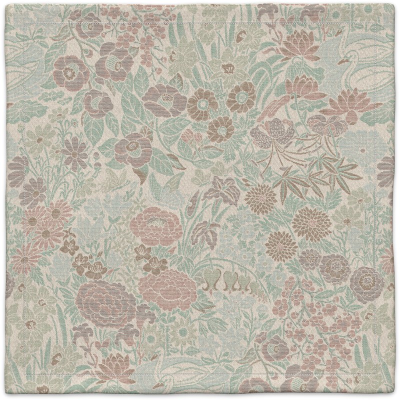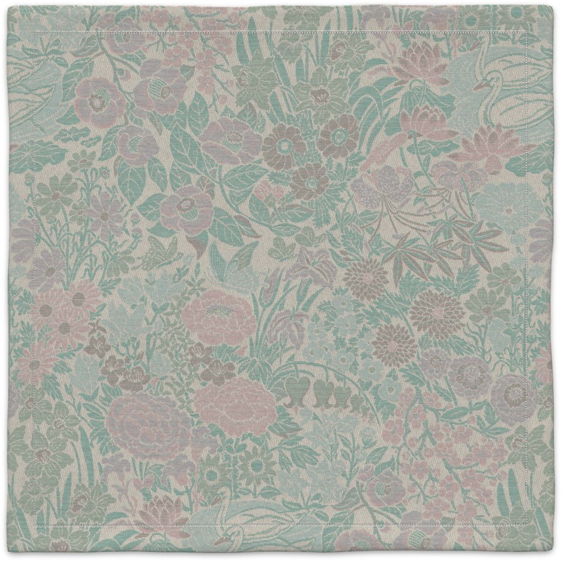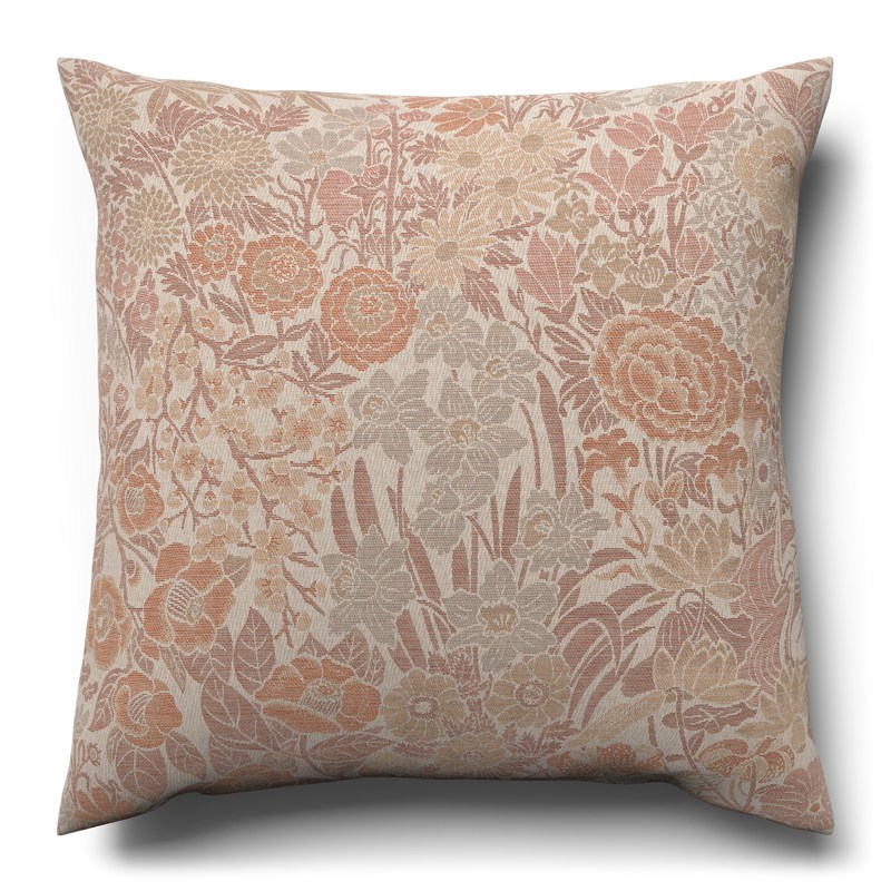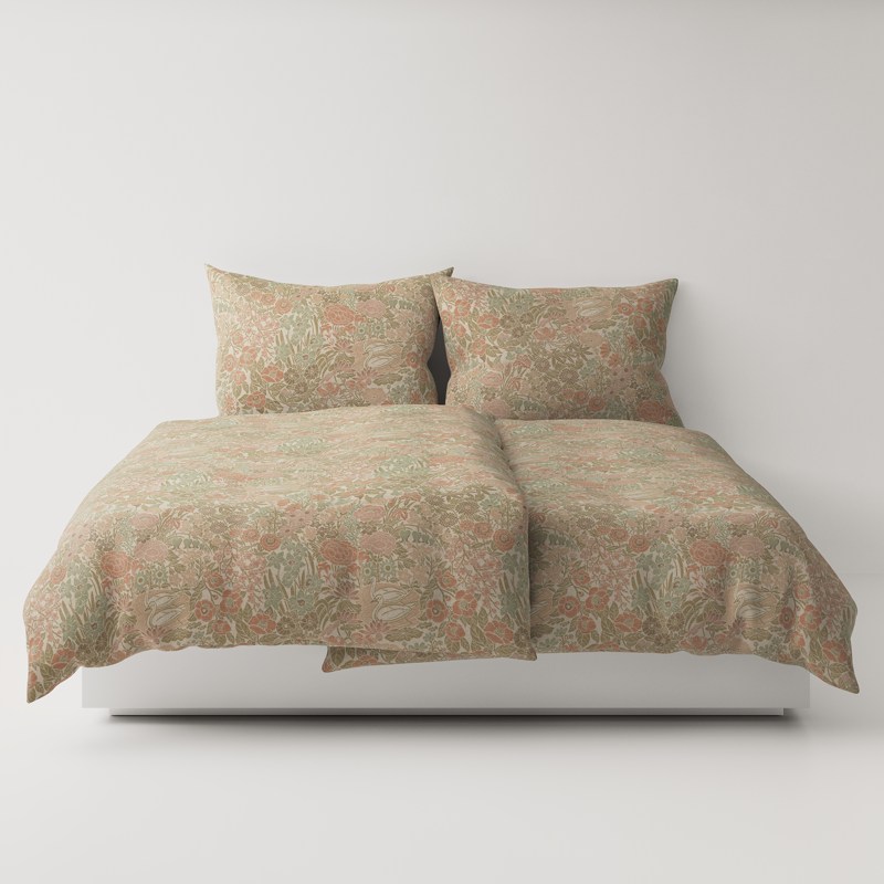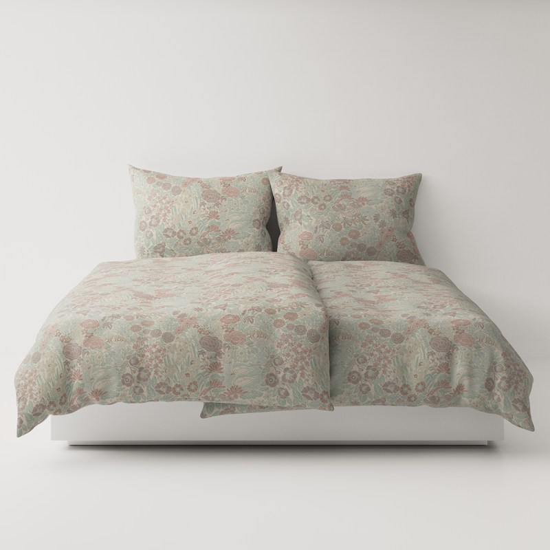 Jeju Gardens – a tribute to the Korean volcanic island of Jeju, where a mild climate allows a unique plant world to flourish. This design tells of the eternal cycle of the seasons in floral allegory: the magnolia welcomes spring with delicate pink blossoms, a symbol of purity. In summer, the lotus unfurls over still waters, symbolizing enlightenment. The chrysanthemum glows in golden tones in the fall, a sign of longevity in Asian tradition. The camellia defies winter with its elegant blossom, the embodiment of constancy. The lily permeates all seasons with classic elegance. What has been cultivated in the gardens of East Asia for centuries finds its way into textile art here – each blossom botanically precise, yet artistically composed. The jacquard technique makes the petals stand out vividly, stems and leaves interweave to create harmonious compositions. Jeju Gardens transforms your bedroom into a place where Eastern garden philosophy meets European linen culture and the changing seasons become timeless beauty.