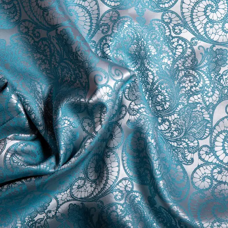 Silk has been woven in Plauen, Saxony, since the days of the German Empire. The Plauen silk mill is one of the last fully integrated manufactories in Europe—and the last to truly master weaving silk in Jacquard patterns. Floral ornaments, paisley designs, baroque textures: what is created here is woven, not printed. The difference lies in the depth. Woven patterns live with the light; they change, they have substance. Nearly a century of experience goes into every piece—knowledge passed from hand to hand and preserved within the weave itself. When you touch Seidenweber bedding, you touch that history.