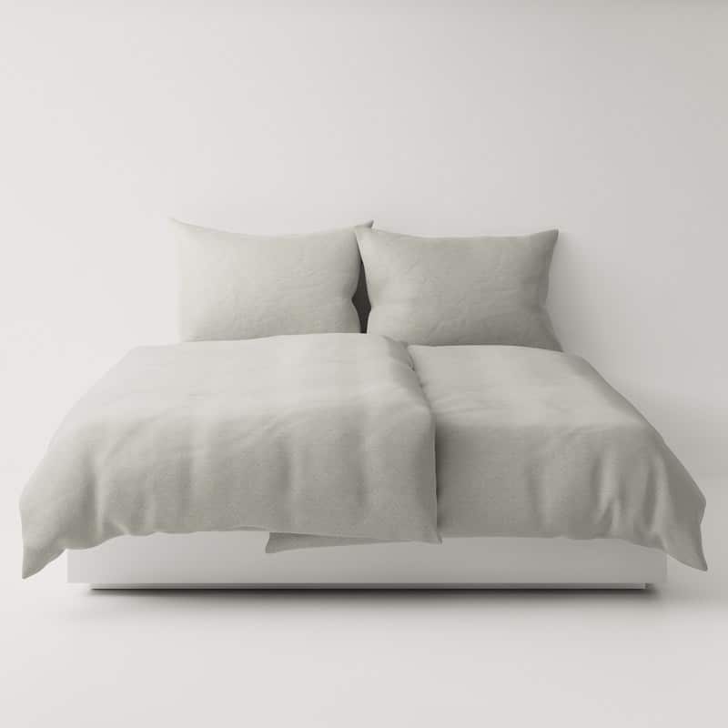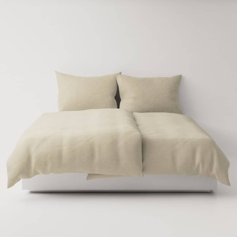 Half-linen bed linen is easy to care for and develops an increasingly pleasant softness over time. Colored linen can withstand temperatures up to 60°, white bed linen up to 95°. In everyday life, 40-60° is usually sufficient for perfect cleanliness. Do not use detergents with optical brighteners – these take away the linen’s natural depth of color. Slight creasing is a quality feature of natural fibers, but is much less pronounced with half-linen than with pure linen. For smoother results: Do not load the drum more than two thirds full and select a maximum of 1000 revolutions. Iron at a medium to high level with residual moisture. Tumble drying is not recommended – air drying is gentle on the fibers and preserves quality for decades.