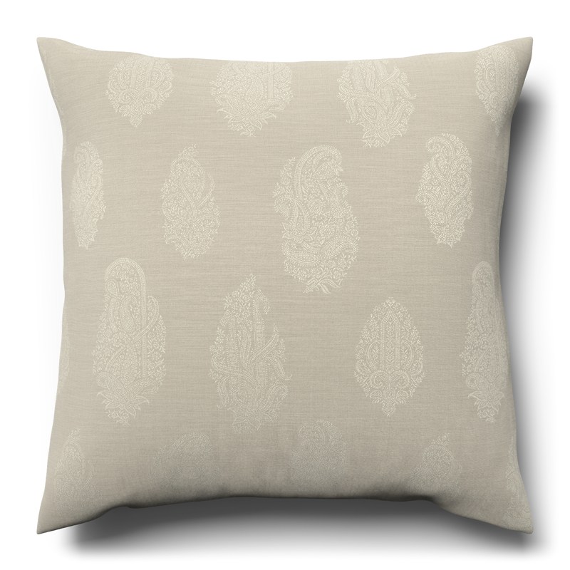 Yara – a name of Persian origin that means “courage” and “strength”, but is also reminiscent of the millennia-old ornamentation that conquered the world from Persia. This half-linen design bears the boteh motif, the drop-shaped figure that became known in the West as paisley. Here, however, the boteh appears in a new interpretation: the individual motifs are offset to create a fascinating state of suspension above the ground. The delicately shaded background emphasizes each figure and makes them appear almost three-dimensional, as if they were floating above the surface of the fabric. This design combines oriental tradition with contemporary clarity – it is neither historicizing nor folkloristic, but of remarkable timeless elegance. In the bedroom, Yara has a calming, almost meditative presence. The ten shades – from pure white to warm rust red and cool anthracite – allow for a variety of interpretations: restrained in monochrome arrangements or lively in colorful combinations.