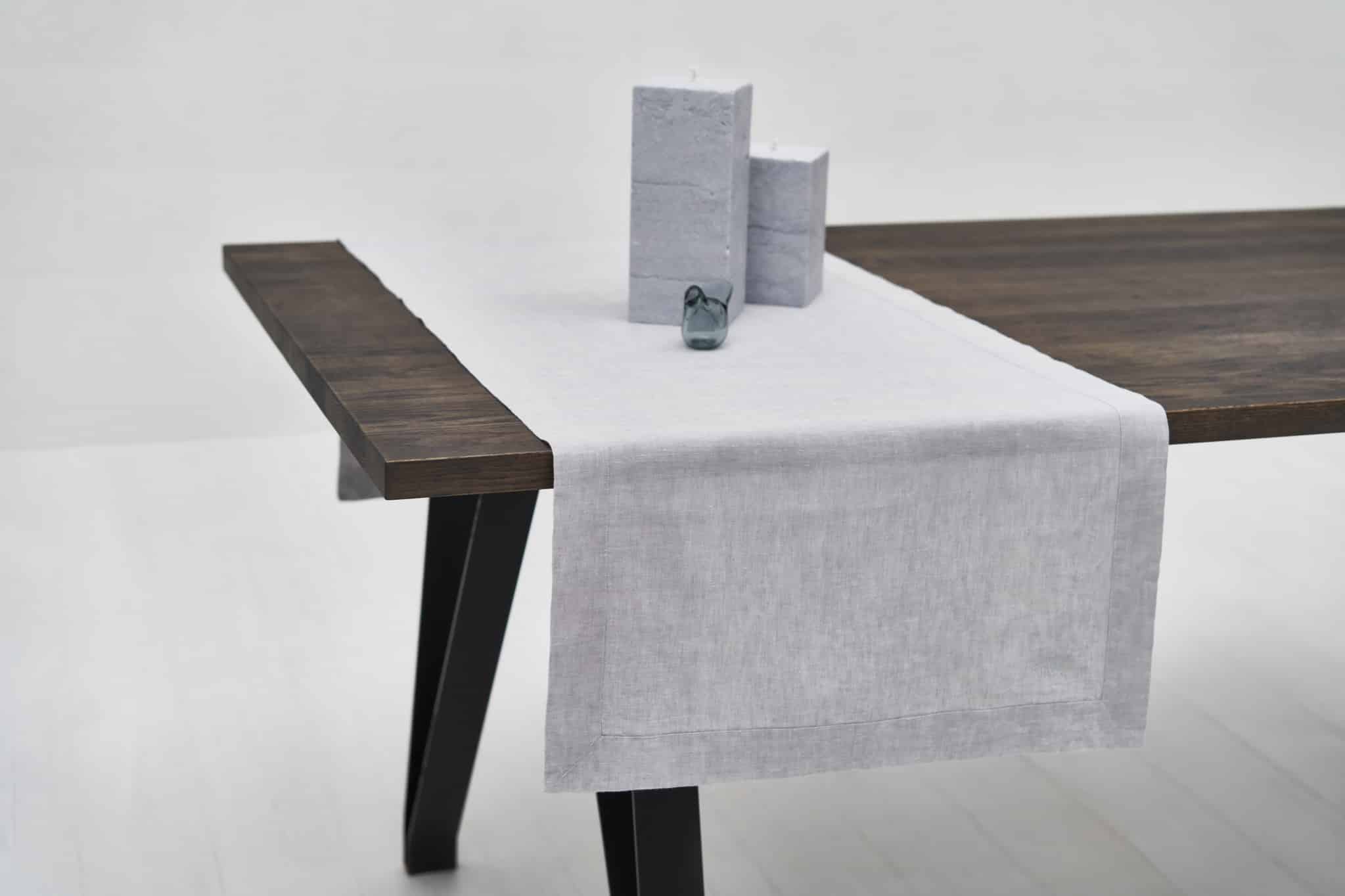 Ein Tischläufer bedeckt nicht den ganzen Tisch — genau das ist sein Vorteil. Die Holz- oder Steinoberfläche bleibt sichtbar, der Läufer setzt die Mitte in Szene. Bei Linen Lounge finden Sie Tischläufer aus Leinen von Geniksa, Libecound Leitner Leinen — einzeln, im 2er-Set oder passend zu unseren Tischdecken, Servietten und Tischsets.