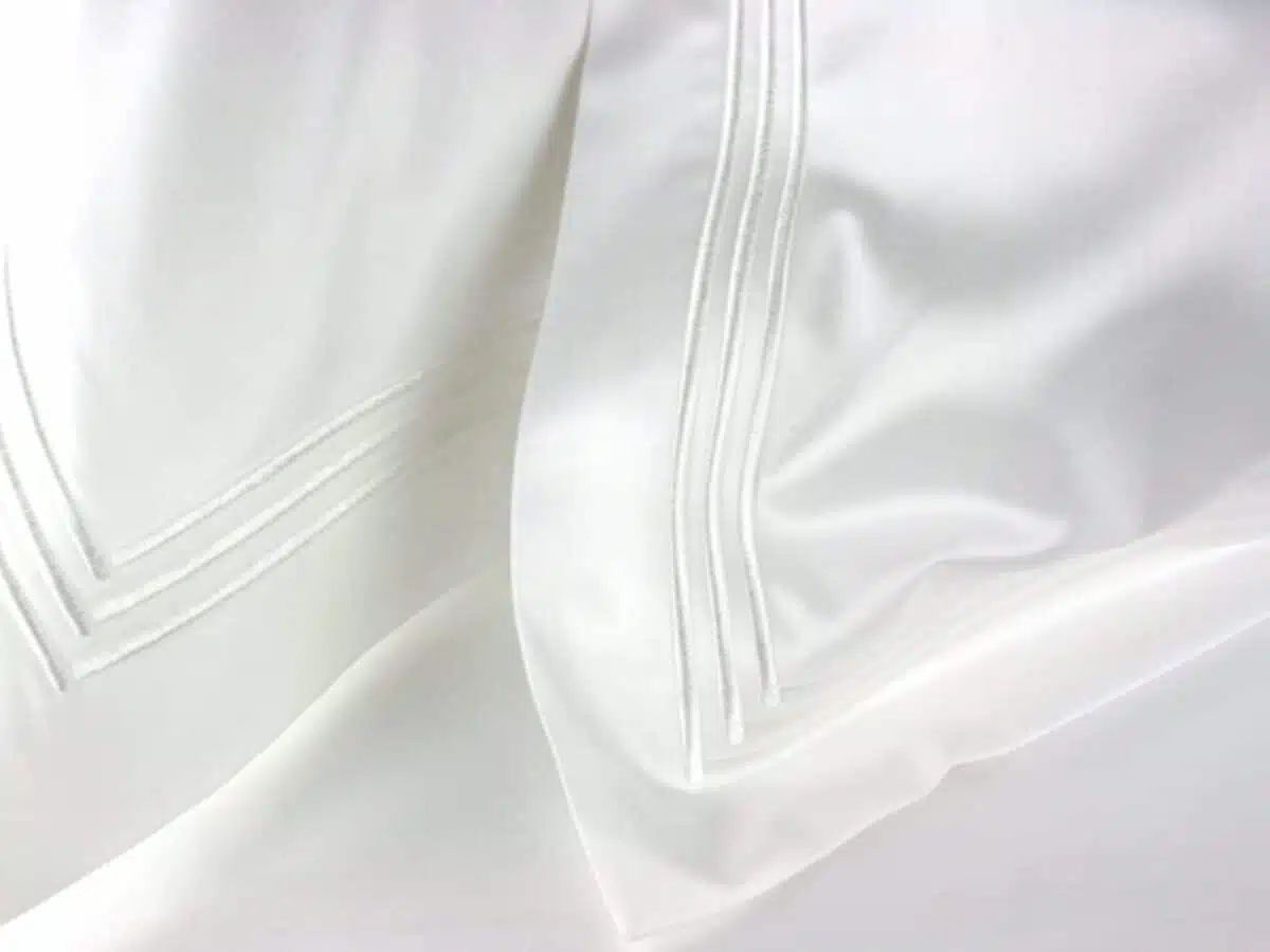 Die unerreichte Langstapel-Länge, die feine Kämmung der Baumwolle, die hohe Fadenzahl, die ganz spezielle Webung der Kanten ergeben ein extrem weiches, aber strapazierfähiges Tuch. Großzügige Säume, Kordelnähte, Doppelsteppstich und Sicherheitsnaht für lange Haltbarkeit. ‚Oxford style‘ Kissenbezüge, die mit durchgehend traditionellen Gehrungsecken vernäht sind.