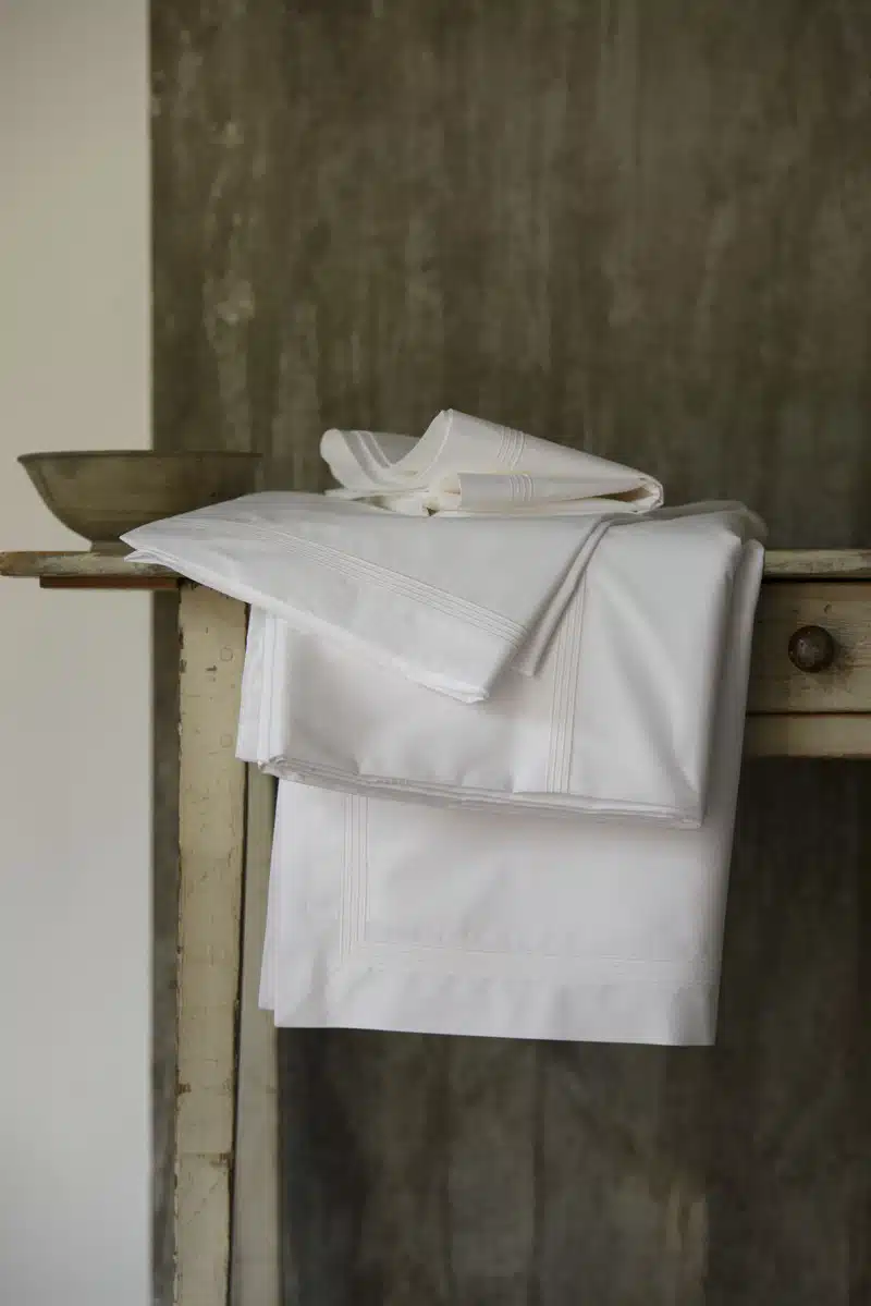 Die unerreichte Langstapel-Länge, die feine Kämmung der Baumwolle, die hohe Fadenzahl, die ganz spezielle Webung der Kanten ergeben ein extrem weiches, aber strapazierfähiges Tuch. Großzügige Säume, Kordelnähte, Doppelsteppstich und Sicherheitsnaht für lange Haltbarkeit. ‚Oxford style‘ Kissenbezüge, die mit durchgehend traditionellen Gehrungsecken vernäht sind.