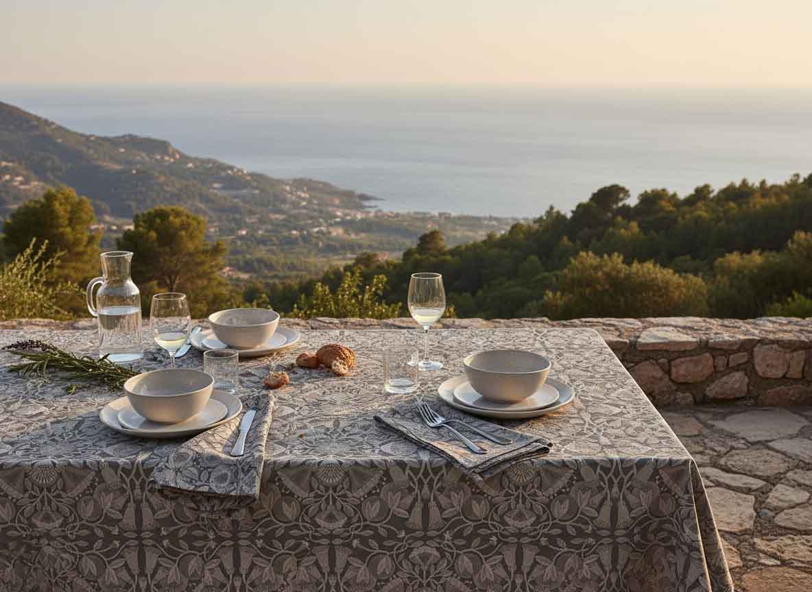 Leinen für die Tafel ist ein Material mit langer Tradition in den gemäßigten Klimazonen Europas. Die Leinenfaser, aus westeuropäischem Flachsanbau gewonnen, zeichnet sich durch ihre glatte, geschlossene Oberfläche aus, die Flüssigkeiten zunächst abweist. Dieser Schutz ermöglicht es, auf Verschüttetes zu reagieren, bevor ein Fleck entsteht. Gleichzeitig ist Leinen stark saugfähig, sobald die Faser durchfeuchtet wird – eine Eigenschaft, die Servietten funktional macht. Die natürliche Glätte erzeugt jenen kühlen, festen Griff, der Tischdecken ihren charakteristischen Fall verleiht. Leinen ist von Natur aus antistatisch und bakteriostatisch – Eigenschaften, die es für den Kontakt mit Lebensmitteln besonders geeignet machen. Die Faser wird durch Gebrauch nicht schwächer, sondern geschmeidiger. Leinen entwickelt Patina statt Verschleiß. Tischdecken aus europäischem Bio-Leinen gewinnen mit der Zeit an Weichheit, ohne ihre strukturelle Festigkeit zu verlieren. Das GOTS-Zertifikat garantiert, dass vom Anbau bis zur Veredelung keine chemischen Bleichmittel oder synthetischen Pestizide zum Einsatz kommen.