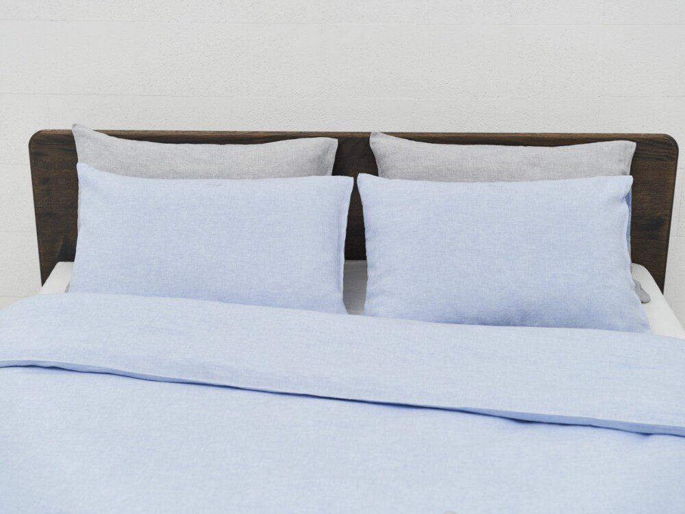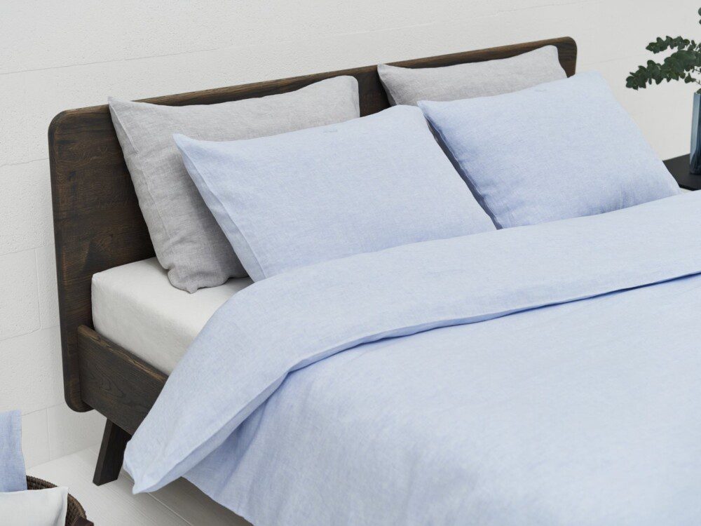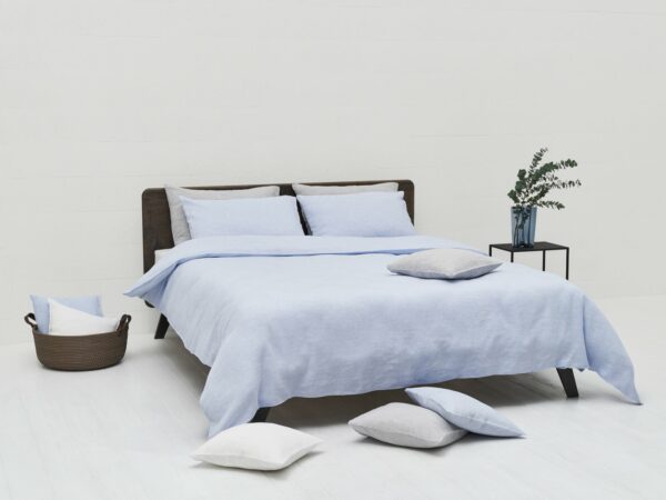 Celeste Classic Leinen Bettwäsche von Geniksa. Aus einem Gemälde Monets scheint der hellblaue Pastellton entlehnt zu sein, der der Leinen-Bettwäsche Celeste classic von Geniksa ihre dezent schöne Farbe verleiht. Diese Bettwäsche heitert jedes Schlafzimmer sofort auf und die berühmten Qualitäten der Flachsfaser sorgen für angenehmen und tiefen Schlaf. Jedes Bettwäscheteil von Geniksa ist mit einem eingestickten Logo, einem Kiefernzweig, versehen. 100 Prozent bestes gewaschenes Leinen.
