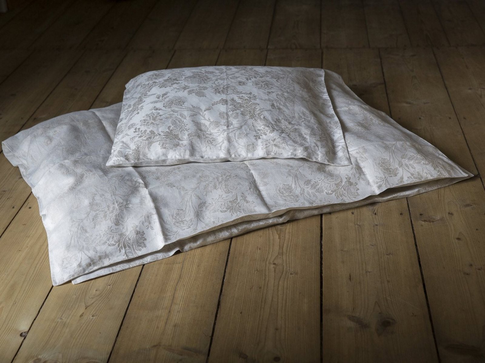 100% gewaschener Leinen Damast. Klimaneutral produziert