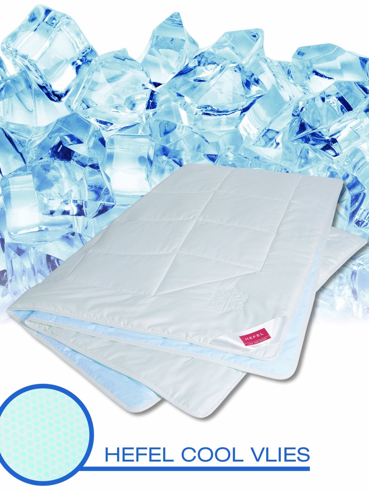 Cool Sommerdecke von HEFEL ist ein Programm, das speziell für warme Sommerabende konzipiert ist. Es handelt sich um klassische HEFEL-Produkte, die mit einer zusätzlichen Kühlfunktion verbessert wurden. Häufig verursacht Überhitzung einen unruhigen Schlaf, der nur wenig Erholungseffekt hat. HEFEL Cool setzt genau das ein. Ein besonderes, weiches Vlies, das Mikrokapseln von PCM (Phase Change Material) an der Oberfläche enthält, dient zur Abkühlung. Damit der Schlafende möglichst lange in der Komfortzone bleibt, setzen diese so viel Kühleffekt frei wie nötig.