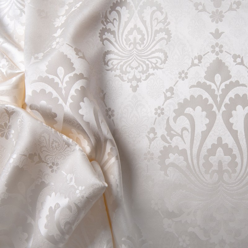 Damast ist eigentlich eine Webart, keine Farbe und kein Muster. Die Bettwäsche Damask ehrt diese Tradition: klassische Ornamentik in zwei Ebenen, gewebt in ungefärbter Seide. Der natürliche Farbton des Materials trägt das Dessin, die Struktur entsteht durch die Bindung selbst. Damast kam über die alte Seidenstraße nach Europa, durch Damaskus, das ihm seinen Namen gab. In Plauen wird diese Geschichte weitergewebt, Faden für Faden.