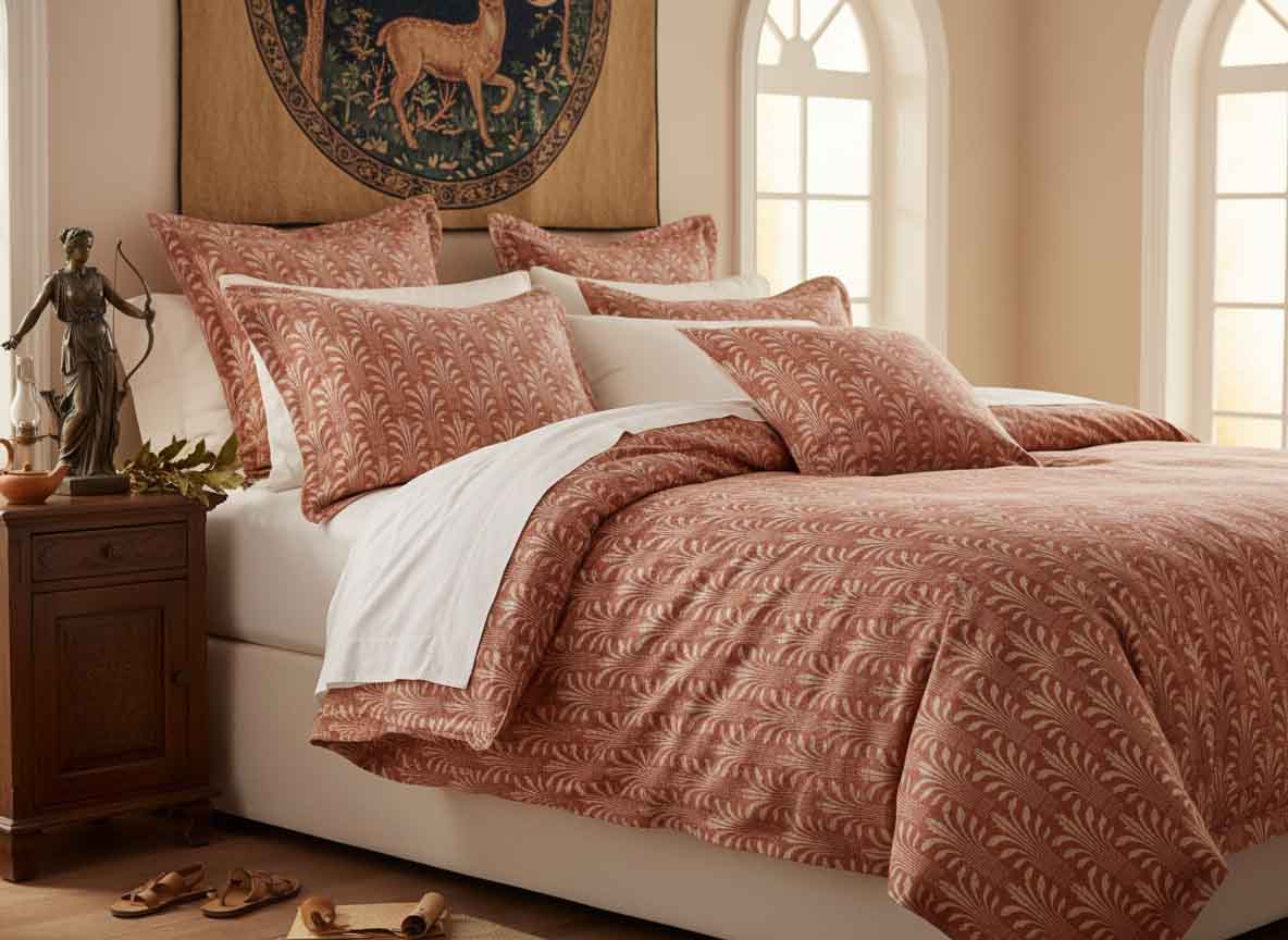 Halbleinen ist das Ergebnis textiler Intelligenz: zwei Fasern, die ihre jeweiligen Stärken zu einem überlegenen Gewebe vereinen. Die Kette aus reiner Baumwolle bringt Elastizität und Weichheit, der Schuss aus reinem Leinen steht für Festigkeit und Dauerhaftigkeit. Diese Konstruktion schafft Bettwäsche mit bemerkenswerten Eigenschaften: An warmen Tagen wirkt der Leinenanteil kühlend, in kühlen Nächten speichert die Baumwolle Wärme. Das Gewebe reguliert Feuchtigkeit natürlich – es nimmt sie großzügig auf und transportiert sie schnell ab, ohne sich feucht anzufühlen. Die antibakteriellen Eigenschaften der Leinenfaser bleiben im Halbleinen weitgehend wirksam, während die Baumwolle das charakteristische Leinenknittern deutlich reduziert und die Pflege vereinfacht. Die bessere Färbbarkeit der Baumwolle ermöglicht die klaren Konturen des Diana-Dessins, die dem Art-Déco-Muster seine charakteristische Präzision verleihen. Preislich attraktiver als Reinleinen und langlebiger als reine Baumwolle, bietet Halbleinen ein außergewöhnliches Preis-Leistungs-Verhältnis.