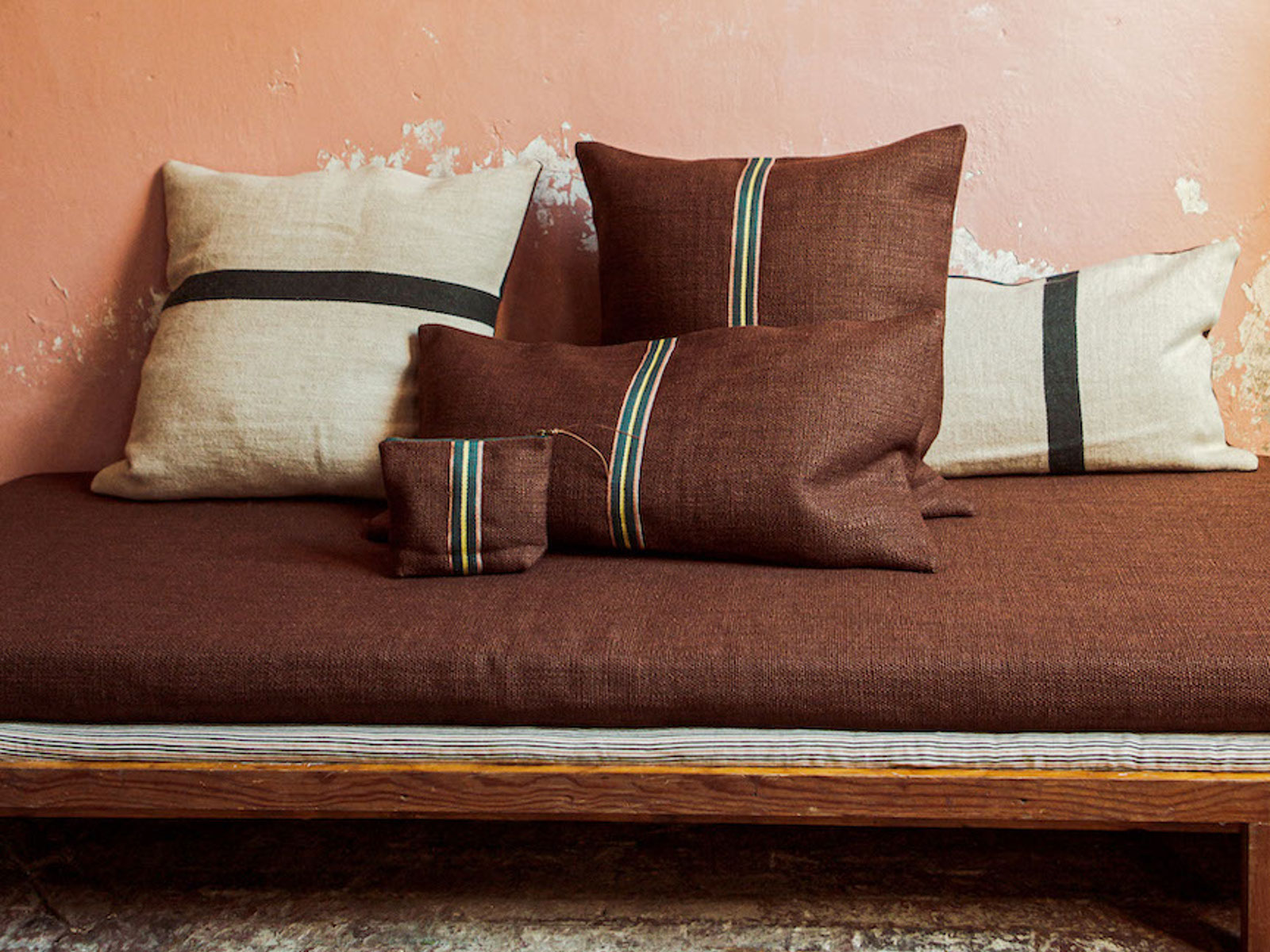 Jasper Leather Leinen-Wolle-Mix in Waldfarben von Libeco. Inspiriert von den Farben in den tiefen Wäldern der Ardennen. Hier im kraftvollen Leather Farbton. Den neuen Leinen-Wolle-Mix gibt es als Kissenbezug und Teppich oder Tasche in gleich vier satten, warmen Farben. Alle Artikel sind mit einer Leinenborte versehen. Sie bieten unendlich viele Kombinationsmöglichkeiten und passen sehr gut zu fast allen Kollektionen von Libeco