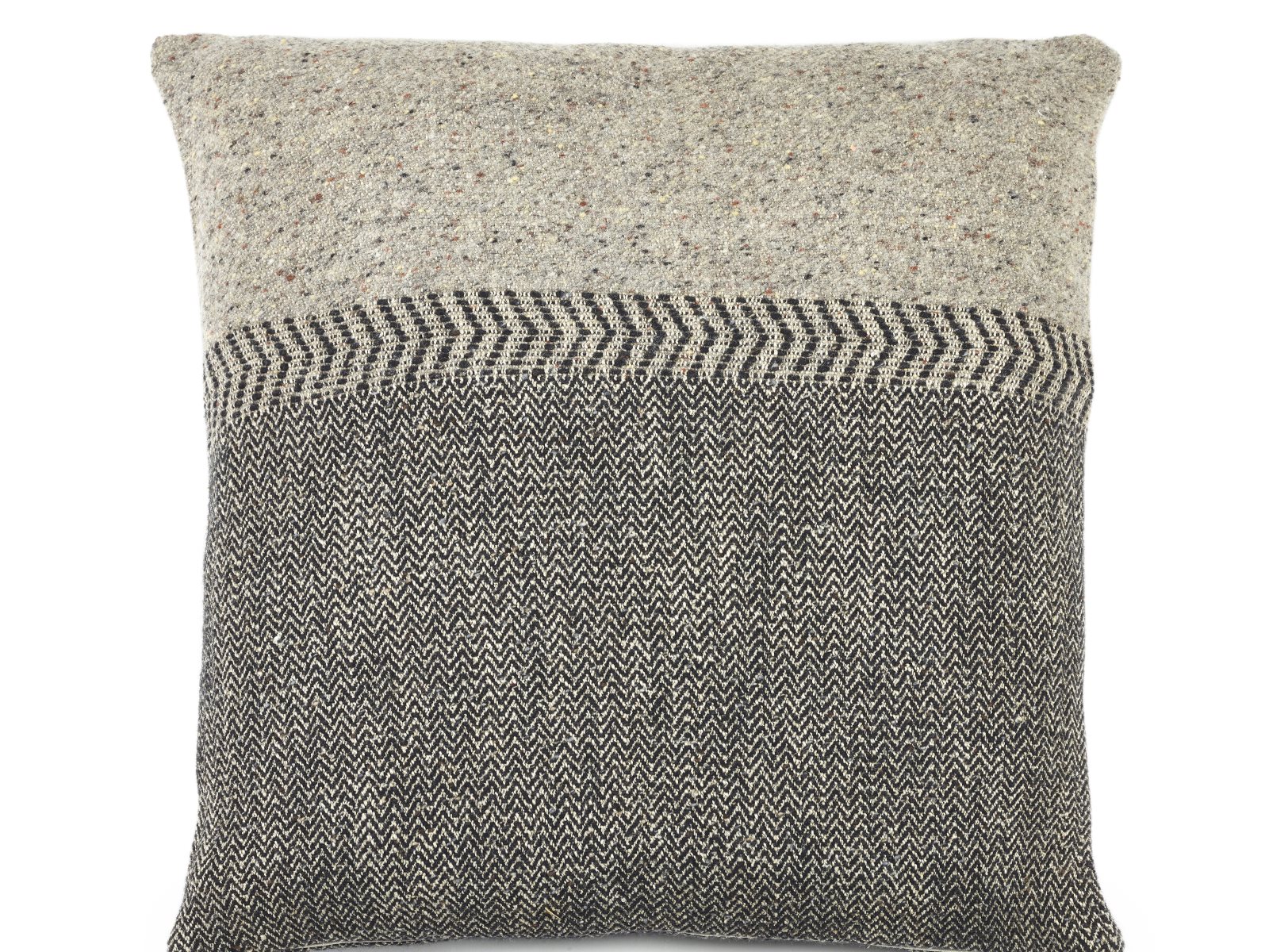 Jules Black Herringbone Leinen-Wolle-Mix von Libeco ist ein klassisches Fischgrät-Muster. Das sagt die Designerin: “Ein wunderschöner Tweed in zwei Farbkombinationen. Diese Plaids und Kissen kombinieren eine Fischgräten- und eine Leinwandbindung und sind in den zwei Pigmentfarben-Kombinationen Grün/Gold und Schwarz/Grau erhältlich. Eine auffällige Kombination, die die Jules-Kollektion garantiert zum Blickfang in jedem Zimmer macht! Der gewaschene Stoff ist dicht und üppig und schmeichelt dem Auge und der Hand.“