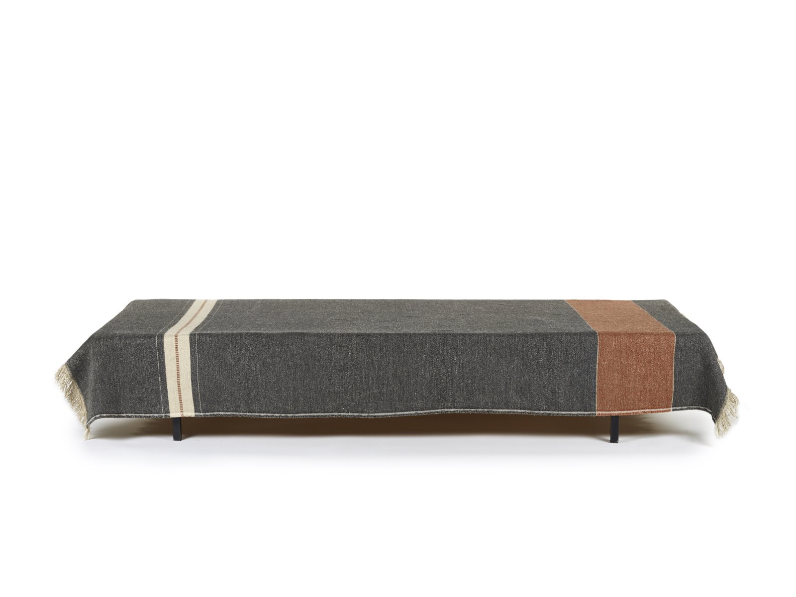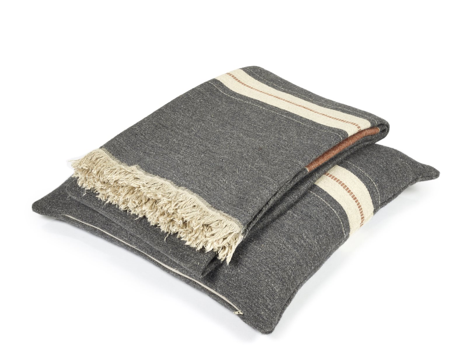 Luc Leinen-Wolle-Mix von Libeco besitzt einen dunkelgrauen Grundton mit Streifen in gebrochenem Weiß und Kupfer.