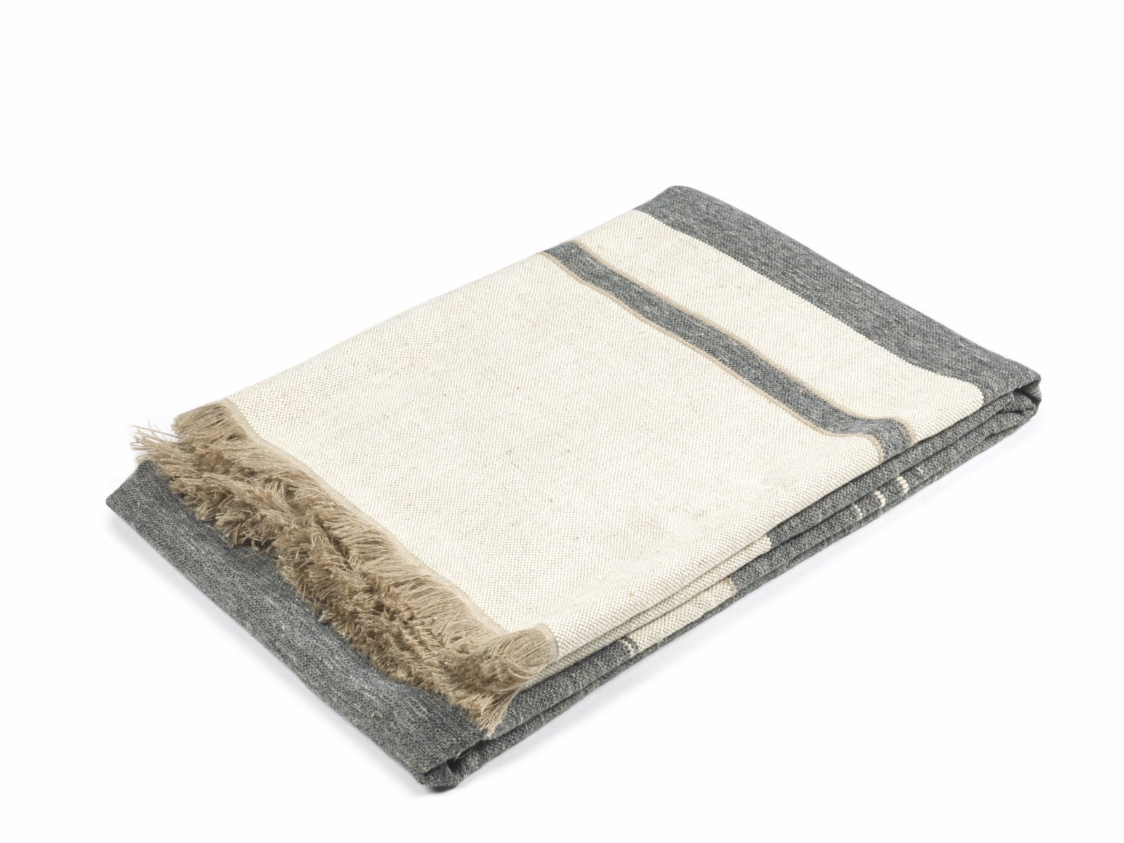 North Sea Leinen-Baumwolle-Mix von Libeco ist inspiriert von dem rauen Stil der Atlantikküste. Das sagt die Designerin: “Der Name dieser Kollektion bedarf keiner weiteren Erklärung. Auffällig dank der einzigartigen Struktur, die durch das unregelmäßige, dicke Garn entsteht, aus dem dieses Gewebe hergestellt ist. Mit einer Basis in Bastionsblau und Streifen in Flax und Oyster muss der Bezug zur Nordsee nicht weit gesucht werden..“