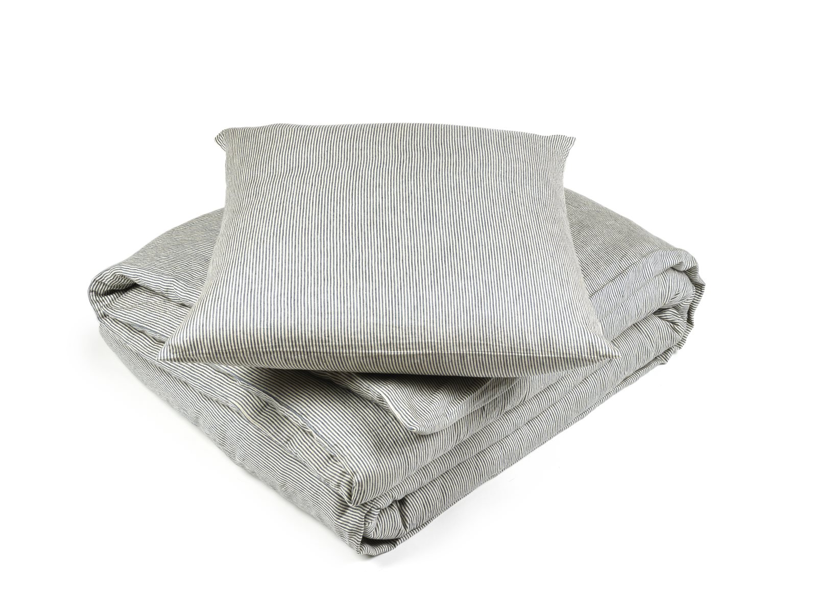 Die Workshop Stripe Leinen Bettwäsche von Libeco ist Leinenbettwäsche mit feinen Streifen – ein echter Klassiker! Workshop Stripe ist ein dicht gewebter Twill von mittlerem Gewicht mit dünnen dunkelblauen und naturweißen Streifen. Das Design ist in seiner Einfachheit genial. Ein echter Klassiker!. Schon im Mittelalter wurde in Belgien im Fluss Leie Flachs geröstet. Ab Mitte des letzten Jahrhunderts wurden dann Flachsrotten genutzt, in denen man die Bedingungen des „Goldenen Flusses“ nachbildete. Heute findet in der Regel die Tauröste auf dem Feld statt. Die Pflanze ist hier einige Wochen lang dem Tau, Wind und Wetter ausgesetzt. Dabei lösen sich die Fasern von den festen Bestandteilen der Pflanze und können geerntet und zu Garn gesponnen werden. Zertifiziert vom Umweltinstitut GOTS, produziert Libeco diese Kollektion auf die maximal mögliche umweltfreundliche und sozial verantwortungsvolle Art und Weise.