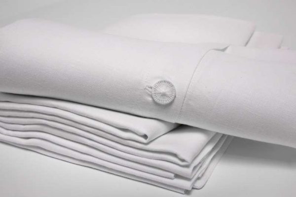 Kopfkissen und Bettdecke haben einen Knopfverschluss mit Zwirnknöpfen